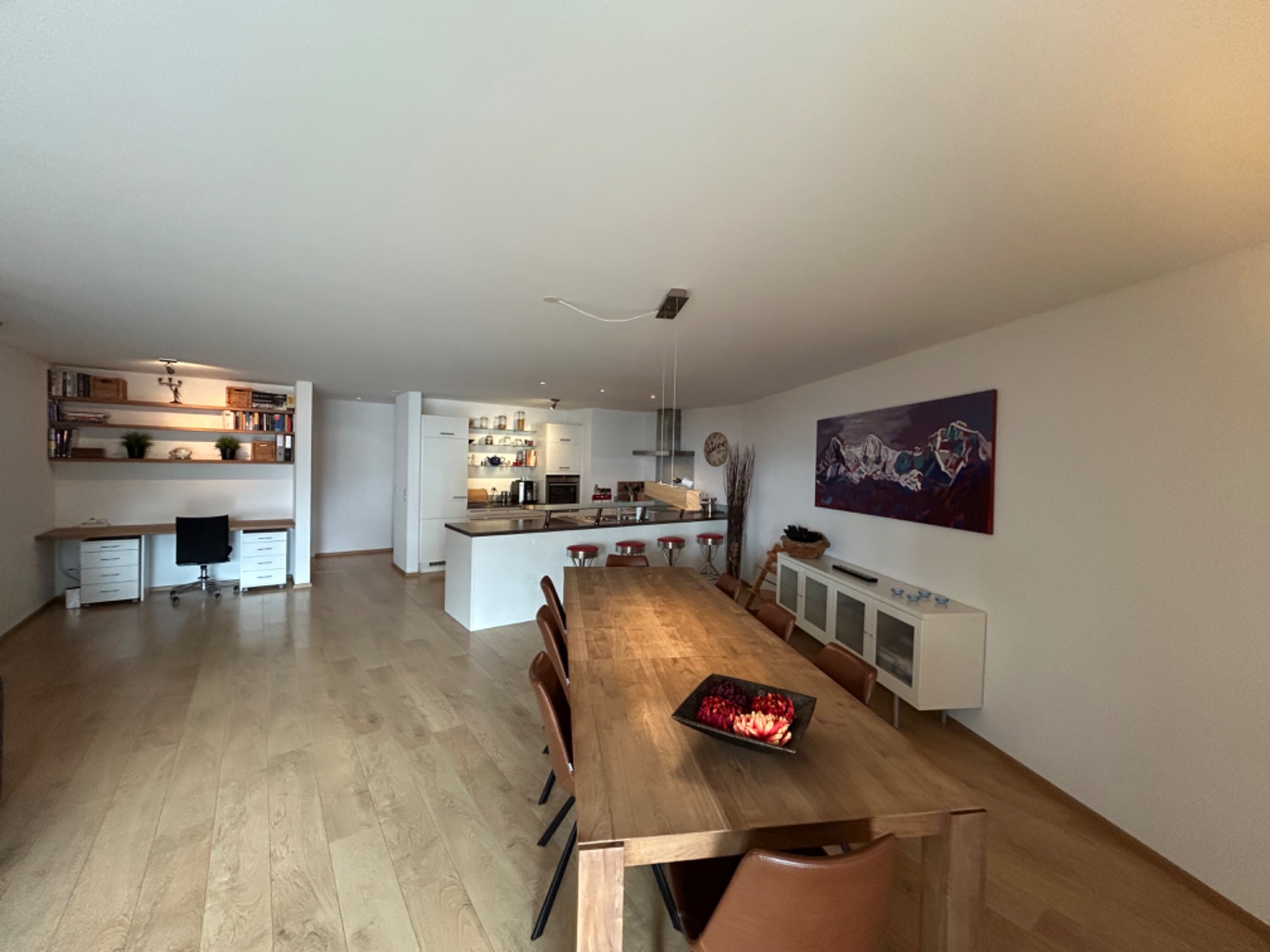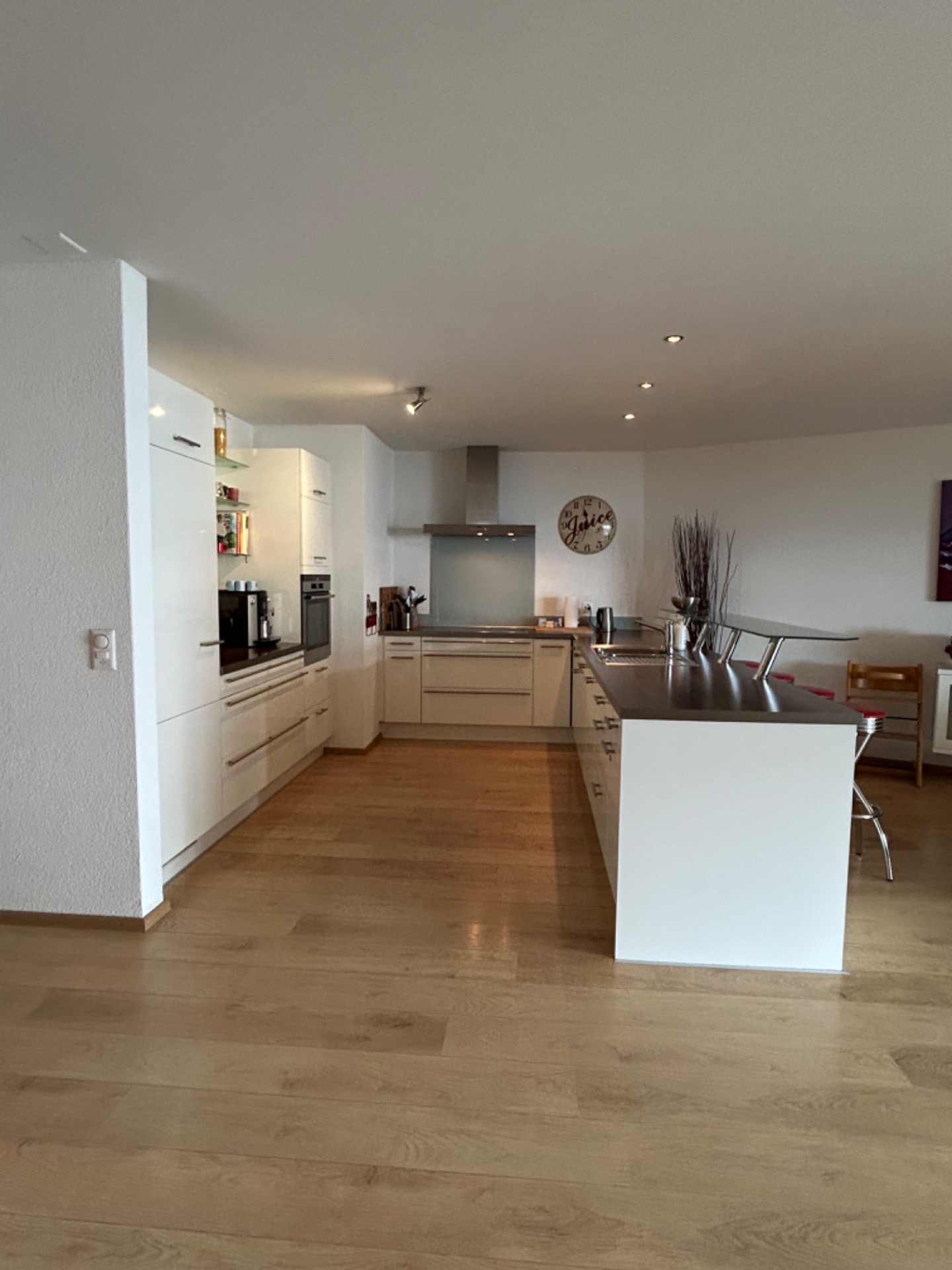 The kitchen is probably better equiped than most 1st homes: a bar with 4 barstools, 5 burner stove, dishwasher, microwave, oven, big fridge and freezer, Jura coffeemachine, filter coffee machine, water cooker, mixer, juice machine, bread machine, fondue set, raclette, pasta maker, vacuum cleaner.